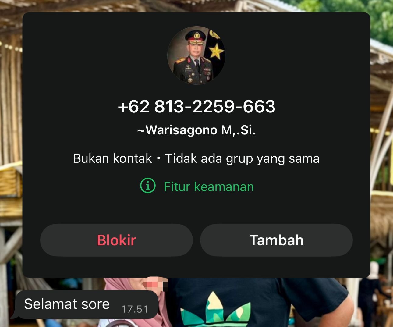 MarahaiNews.id – Orang Tak Dikenal (OTK) kembali mencatur nama Kapolda Maluku Utara, Waris Agono, di media sosial (medsos), diduga untuk melakukan tindakan penipuan.
