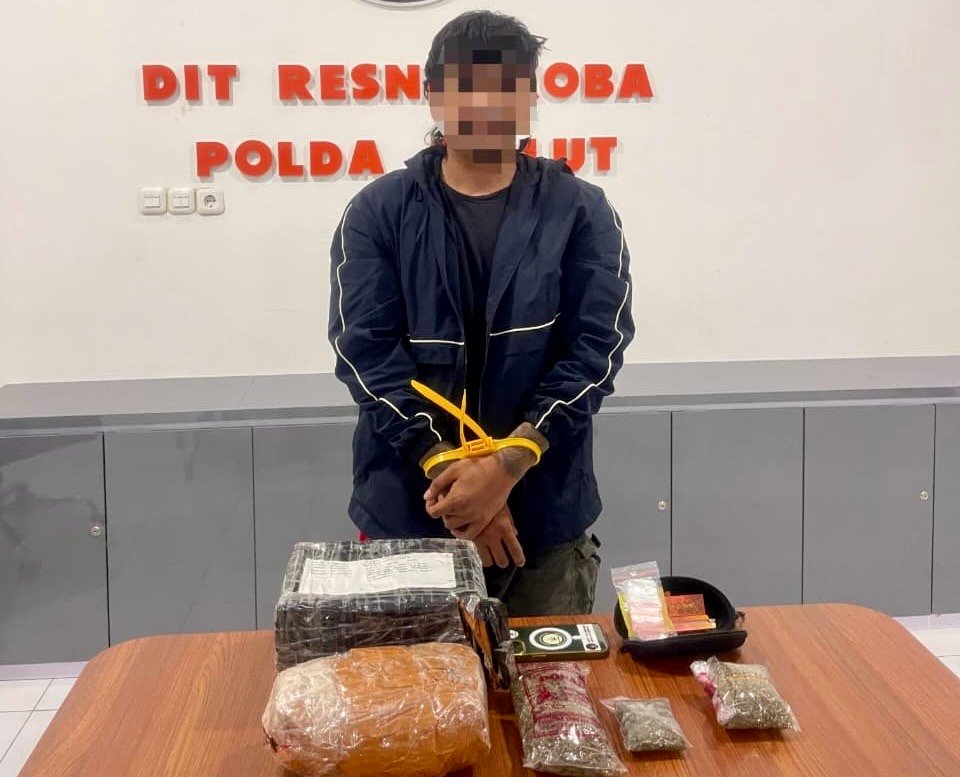 Direktorat Reserse Narkoba Polda Maluku Utara, meringkus seorang pemuda ditangkap karena menerima paket diduga berisi Narkotika jenis ganja oleh rekanya dari Medan, Sulawesi Utara.