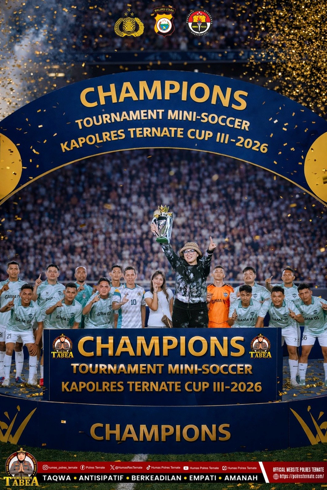 Adapun hasil akhir Turnamen Mini Soccer Kapolres Ternate Cup III Tahun 2026 adalah sebagai berikut: