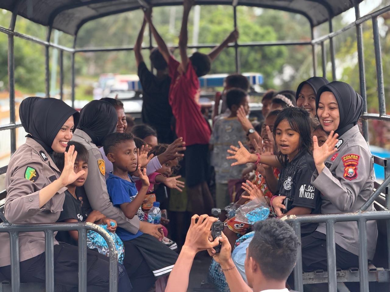 Kegiatan Trauma Healing dipusatkan di lapangan bola Desa Sibenpopo, Kecamatan Patani Barat, yang dikuti 48 anak-anak di desa setempat, serta dihadiri Kapolres AKBP Fiat Dedawanto, Wakapolres Kompol Hefrizon, Katim BAG PSI RO SDM, AKP Fendi Ferdian Anggraiawan. Jumat 10 April 2026.